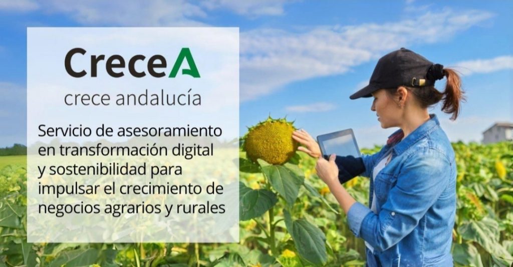 La Consejería de Agricultura, Pesca, Agua y Desarrollo Rural ha puesto a disposición de los andaluces la iniciativa ‘Crece Andalucía’ (‘CreceA’), un sistema gratuito de asesoramiento sobre sostenibilidad y digitalización del sector primario.