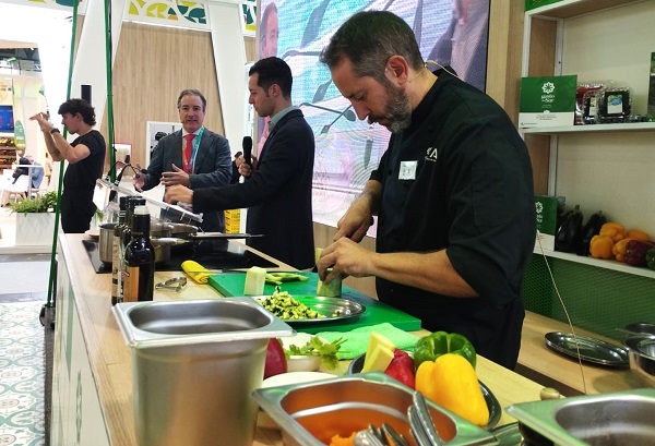 Cooperativas Agro-alimentarias de Andalucía también ha programado acciones promocionales dirigidas a difundir las bondades de las frutas y hortalizas de la comunidad en la gastronomía. Así, se han realizado degustaciones de productos cooperativos y se han llevado a cabo dos eventos de cocina en vivo en la zona de ‘Show Cooking Andalucía’.