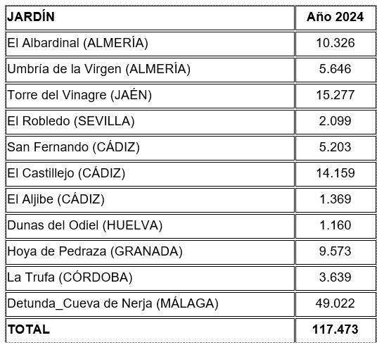 La Red Andaluza de Jardines Botánicos y Micológicos atrae a 117.400 visitantes en 2024