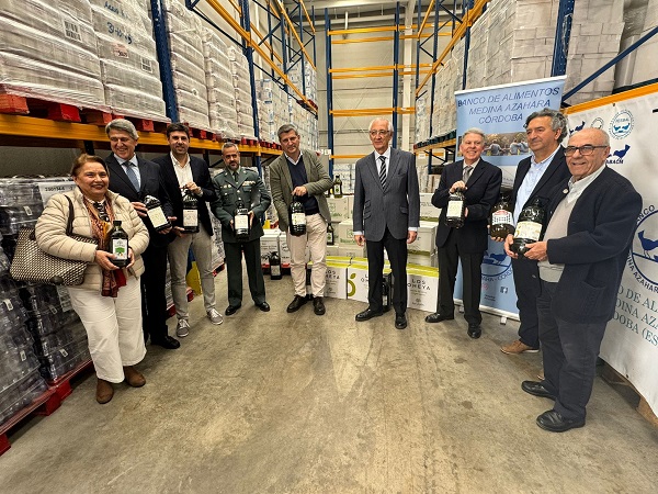 La Consejería de Agricultura, Pesca, Agua y Desarrollo Rural, a través de la delegación territorial de Córdoba y en colaboración de la Guardia Civil de Córdoba y Cooperativas Agroalimentarias de Córdoba han entregado este viernes a la Asociación Banco de Alimentos Medina Azahara de la ciudad un total de 615 litros de aceite de oliva virgen extra procedente de aceitunas robadas e incautadas.