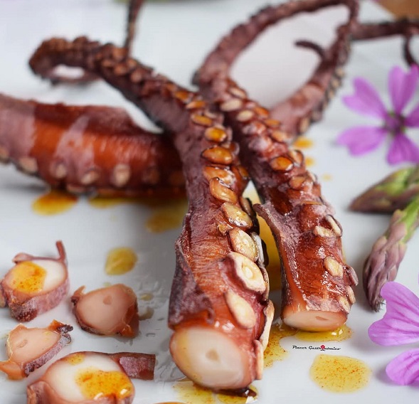 Los alimentos amparados por la ETG ‘Pulpo Seco de Adra’ son el resultado de una receta tradicional que aporta unas características diferenciales al pulpo de roca o pulpo común utilizado como materia prima de base. Entre las características organolépticas del producto destacan su color rosado-granate, su intenso aroma y sabor a mar y su textura suave, con gran elasticidad y un interior jugoso.