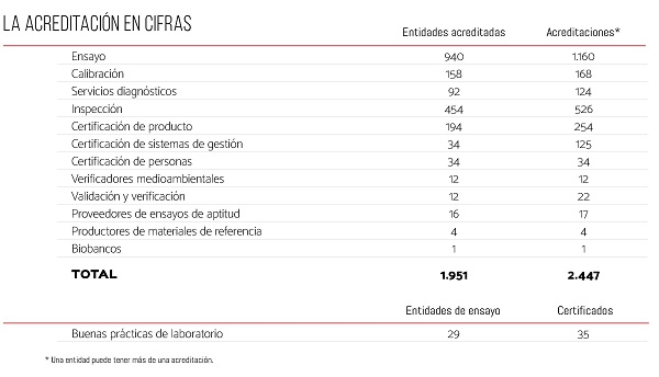 El sistema de acreditación español superó, a finales del año pasado, las 2.400 acreditaciones, abarcando la práctica totalidad de los sectores, y despuntando en áreas como las TIC, ciberseguridad, sostenibilidad, eficiencia energética o economía circular
