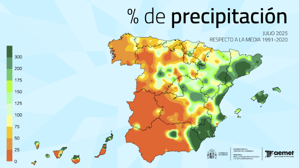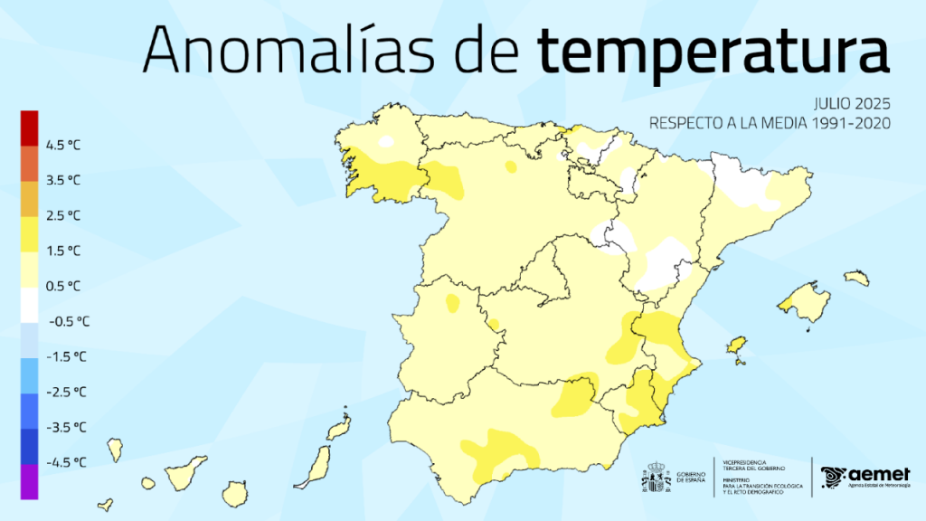 La Agencia Estatal de Meteorología (AEMET), dependiente del Ministerio para la Transición Ecológica y el Reto Demográfico (MITECO), ha hecho público el avance climático de julio de 2025, un mes que tuvo carácter cálido y húmedo para el conjunto de España.