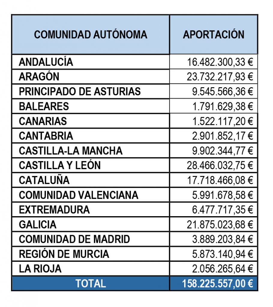 La distribución territorial de los fondos para el programa escolar de consumo de leche entre las 13 comunidades autónomas que lo aplican es el siguiente: