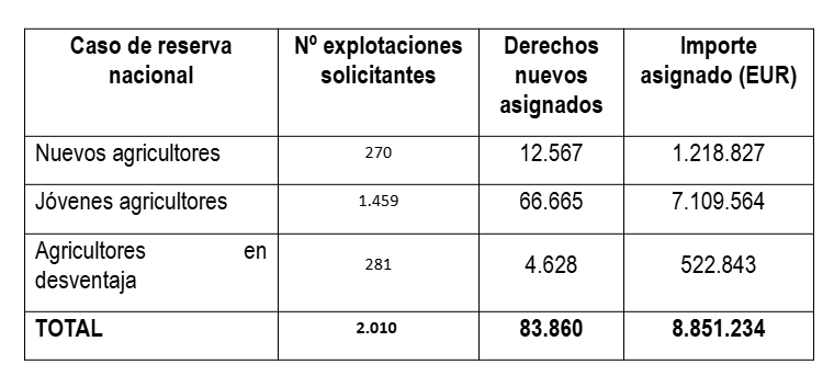 Asimismo, se han concedido derechos por valor de 1.218.827 de euros a 270 nuevos agricultores, con una asignación media de 4.514 euros.