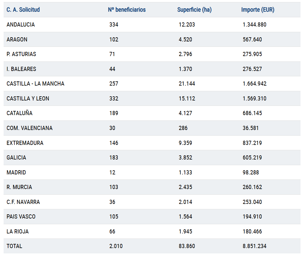 Según los datos enviados por las comunidades autónomas a la base de gestión de derechos de ayuda básica a la renta del FEGA, la distribución de beneficiarios ha sido la siguiente: